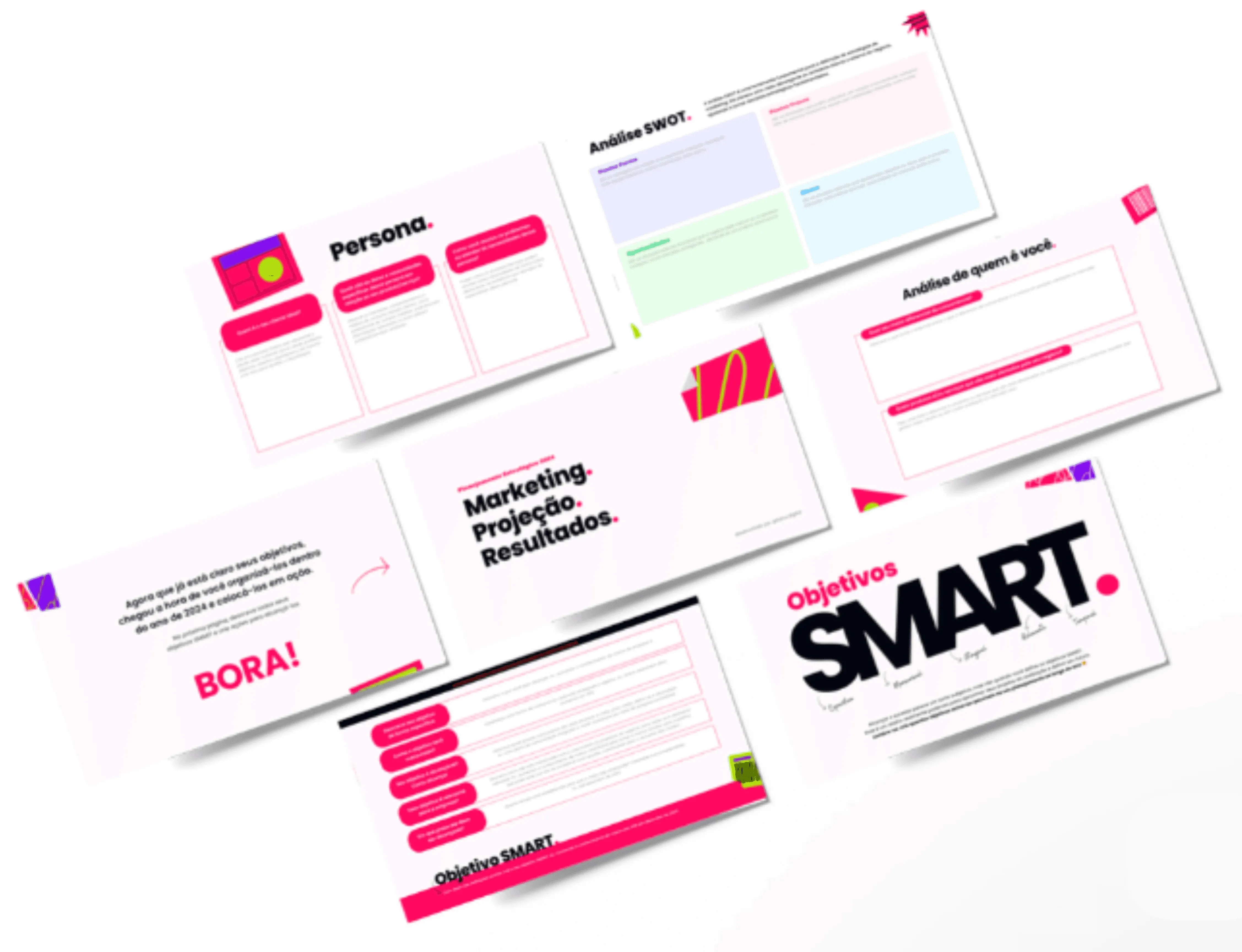 O Planner Estratégico de Marketing 2024 é a sua ferramenta para transformar SONHOS em METAS ALCANÇÁVEIS. Criado para profissionais ambiciosos como você, este planner é mais do que um simples calendário - é o seu guia personalizado para o sucesso.